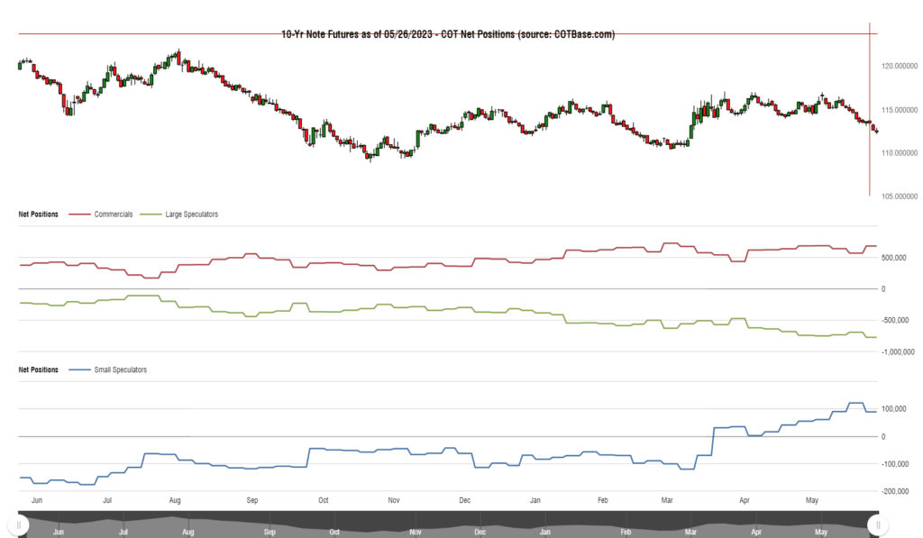 If we look at commitments of traders in interest rate futures, the picture looks positive as well, with large speculators being surprisingly short at this point, which we view as a contrarian opportunity to go long. See below.